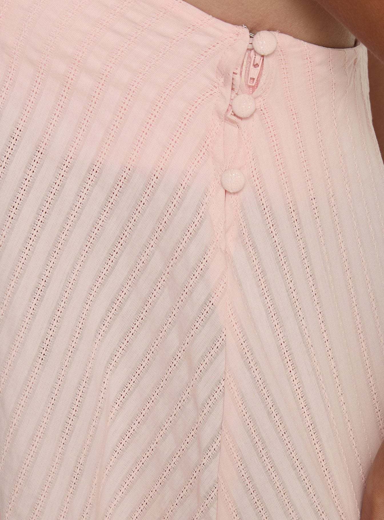 - Textured fabric, silicone strip, side boning inner bralette, crochet trim detail, side button & zip closure