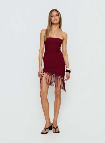 - Strapless mini dress with tassel detail