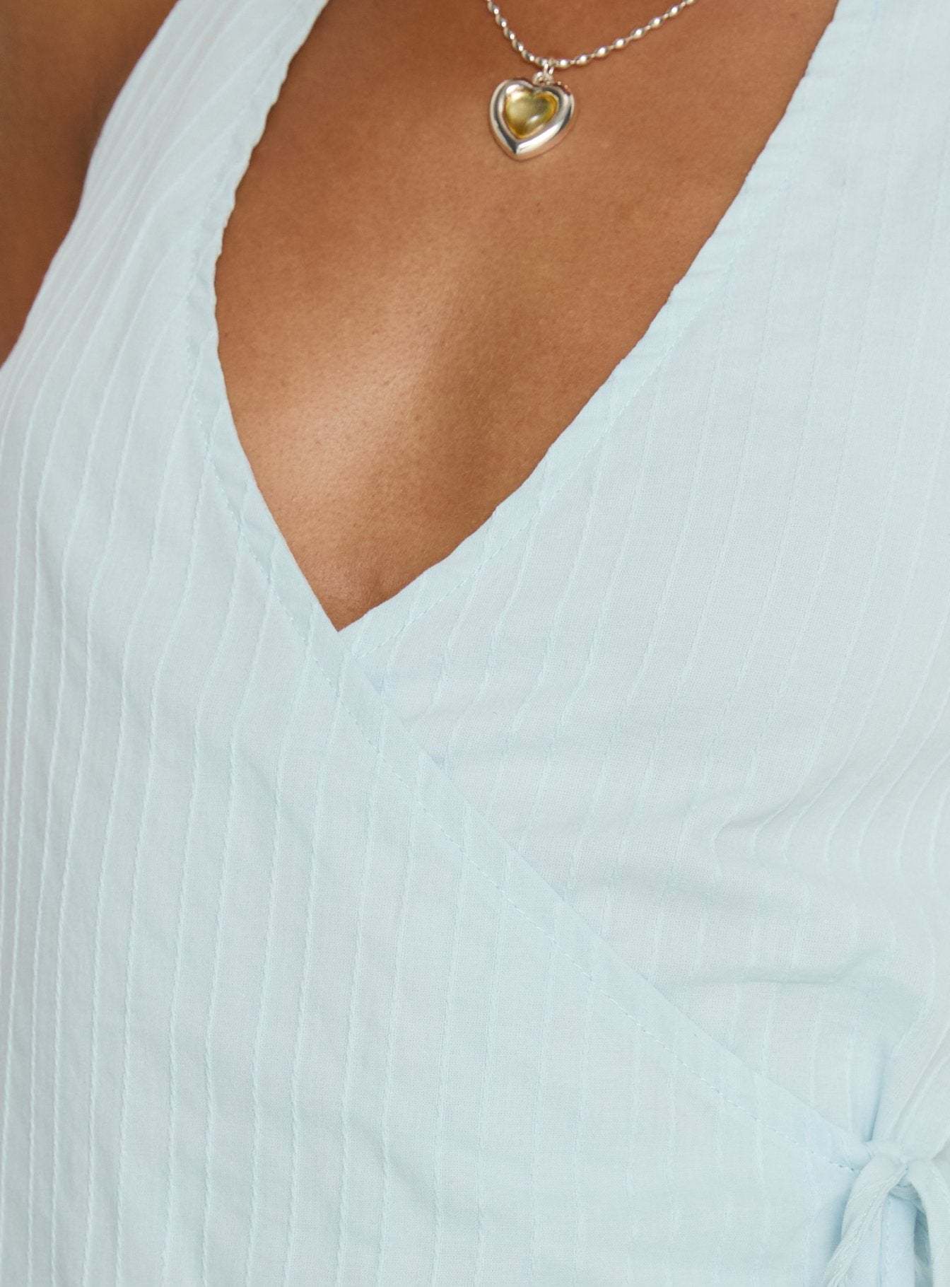 - V-neckline, tie at front, side zip closure, tie halter, elasticated back