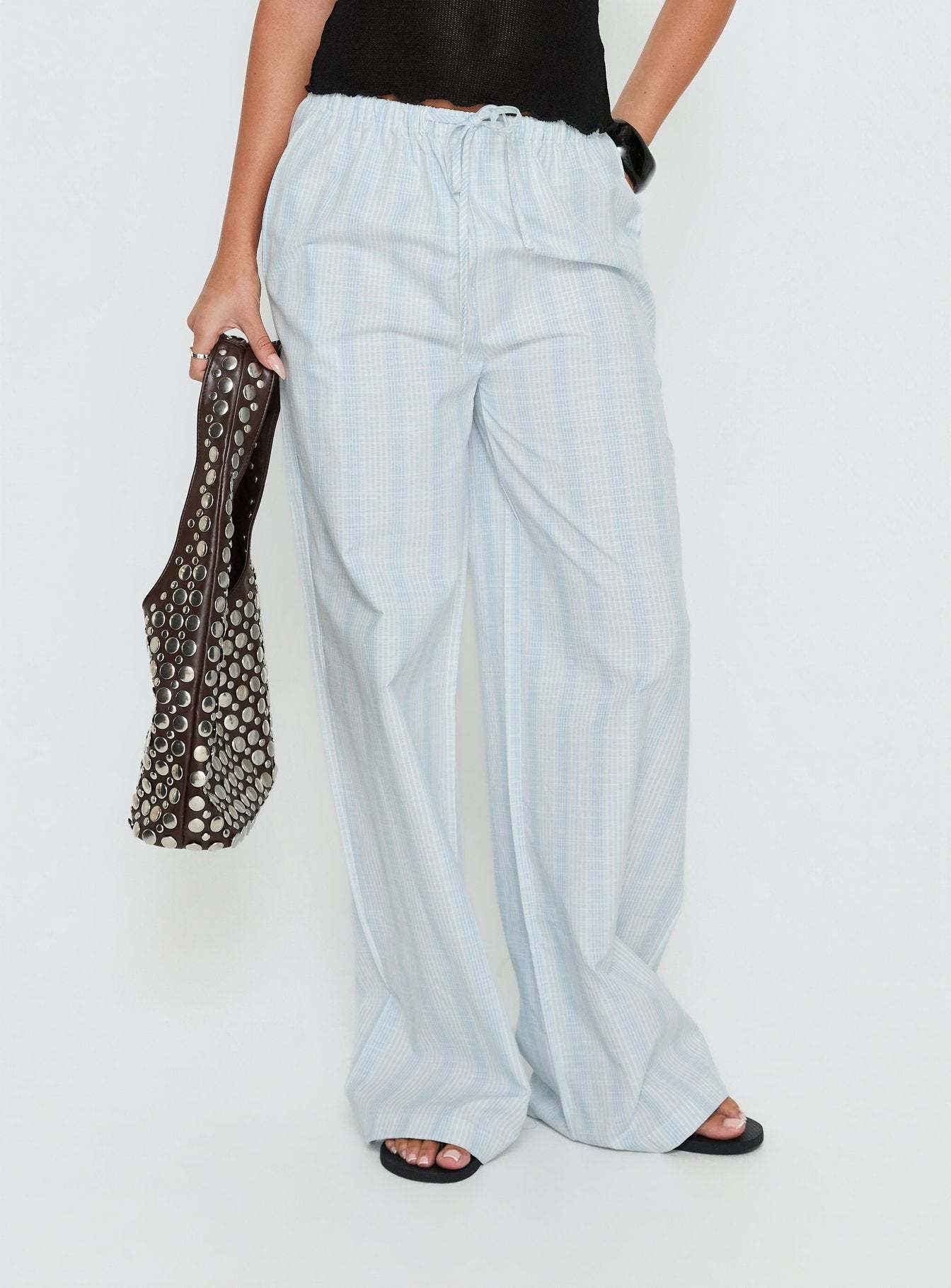 - Wide leg pants in semi-sheer material with a stripe pattern