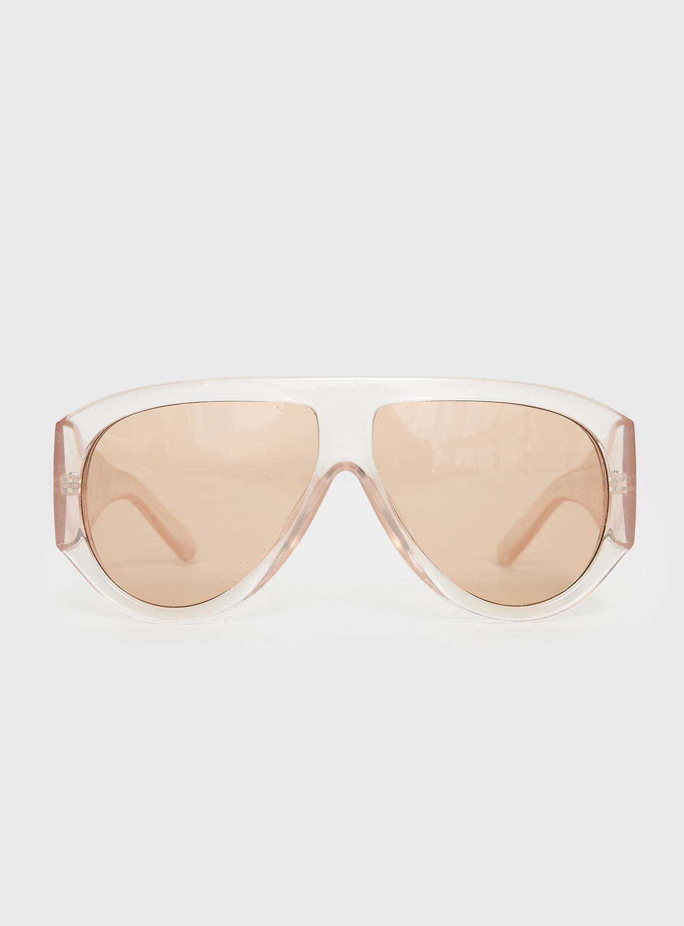 - Amber-tinted lenses, moulded nose bridge, thick arms