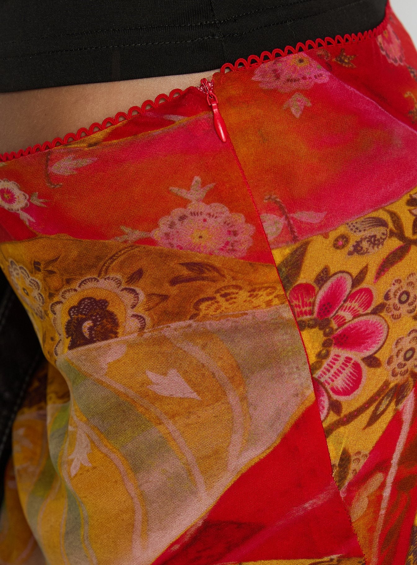 - Lace trim, invisible zip at side