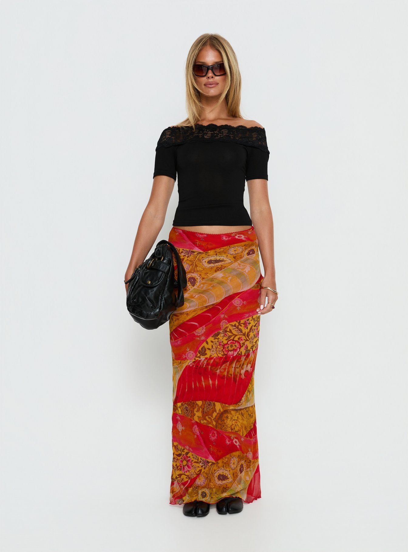 - Maxi skirt in paisley print with mid-rise fit