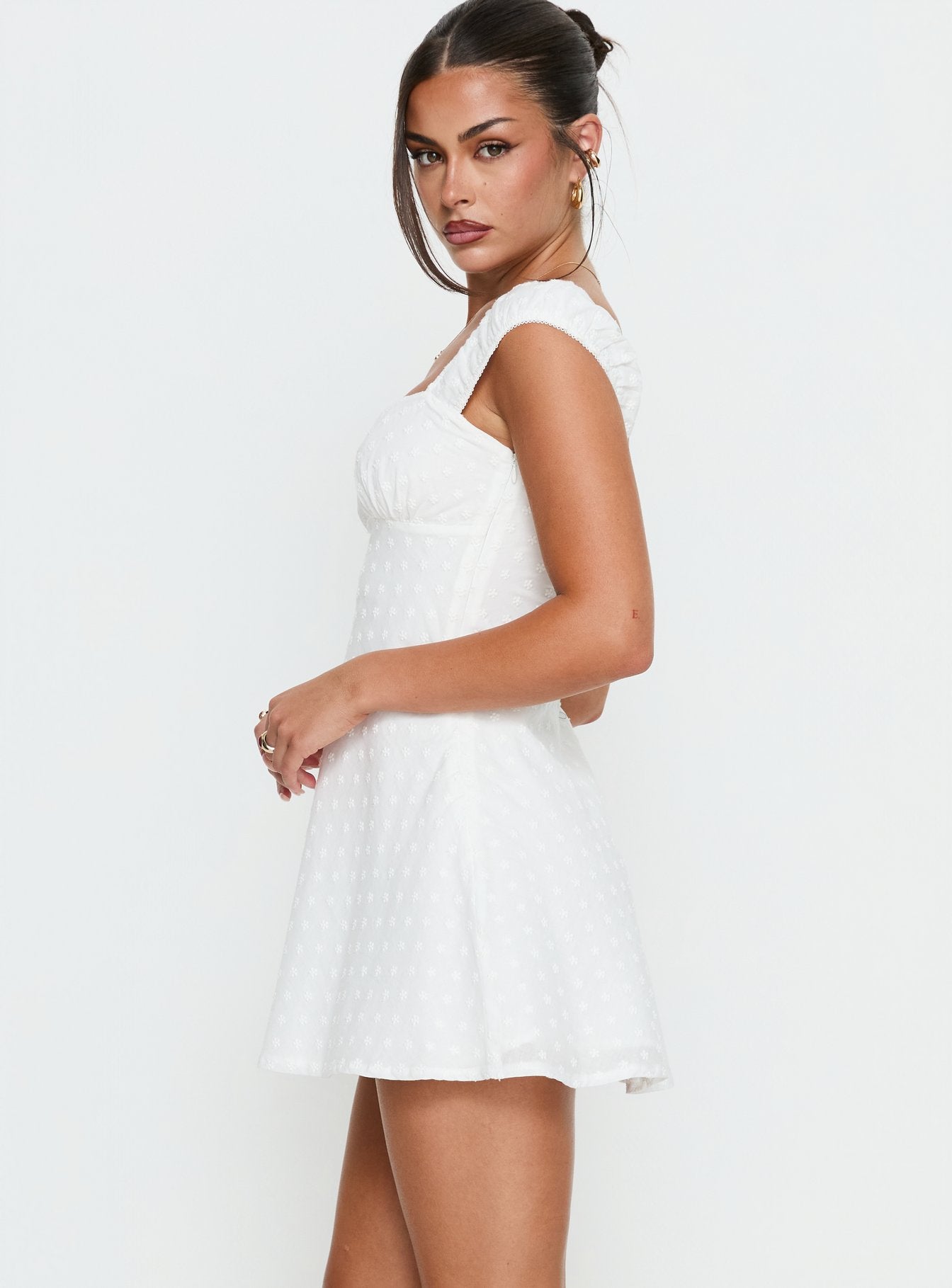 - Square neck mini dress with floral detail
